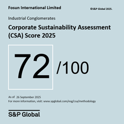 在2024年的标普全球CSA评估中,复星国际已取得70分的优异成绩,位于全球同业前5%。今年,随着可持续发展工作的不断深入,复星国际的努力再次获得了认可,标普全球CSA评分上涨至72分。